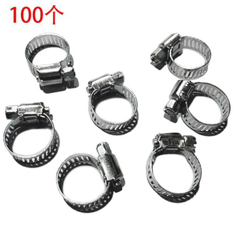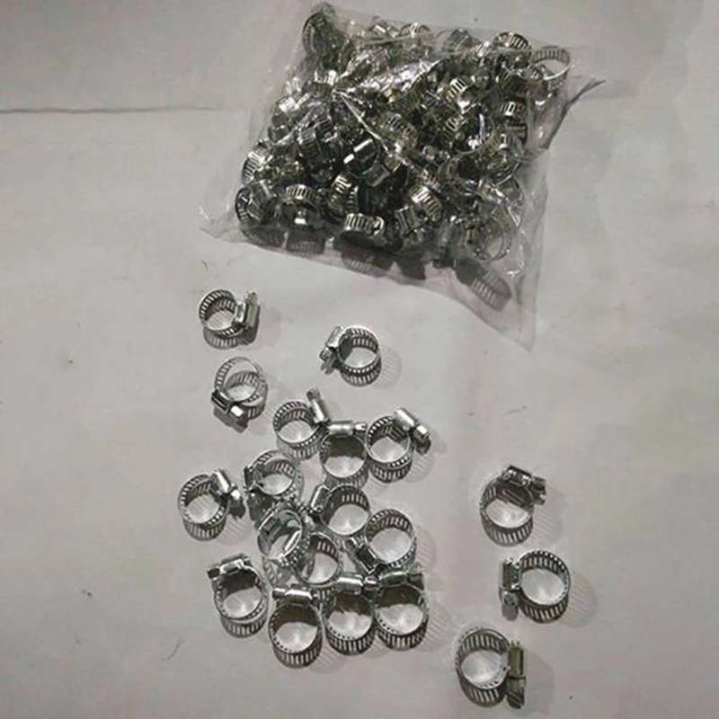 100 Pcs Adjustable Stainless Steel Drive Hose Clamp Three Clamp Fuel Pipe Worm Gear Pinch Spring Cl